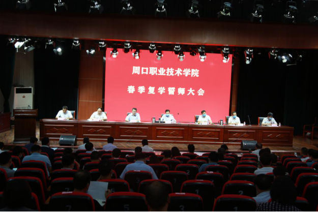 5月27日下午,我校在开元校区学术报告厅召开了“周口职业技术学院春季复学誓师大会”。党政领导班子全体成员,全校副科以上干部参加会议,校党委副书记赵振然主持会议。