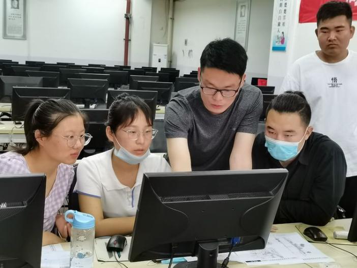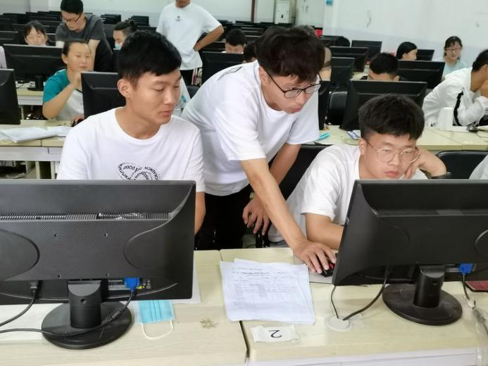 顶层的实训室内闷热无比,却丝毫不影响师生们对设计思路的交流。