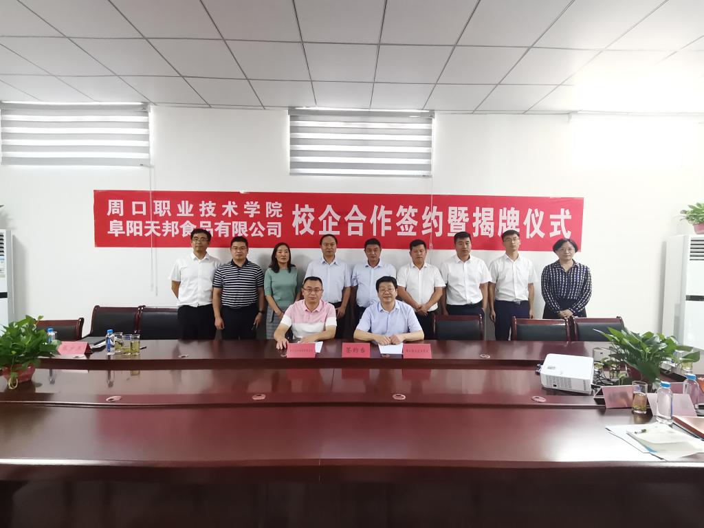 8月27日上午,副校长许永安带领教务处处长付晓东、招生就业处处长武金娟、国产精品久久久久久吹吹潮党总支书记李民、国产精品久久久久久吹吹潮院长李嘉和相关人员,一行7人到阜阳天邦食品有限公司参加产教融合签约及揭牌仪式。