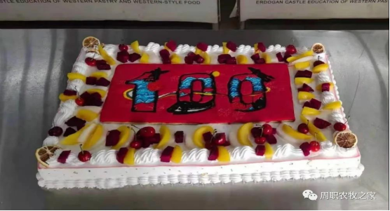 同学们作品中别出心裁地采用“党徽”、“建党100周年”等设计元素,将对党的热爱之情充分融入蛋糕制作当中,精雕细琢制作出一个个风格独特又精致可口的蛋糕。