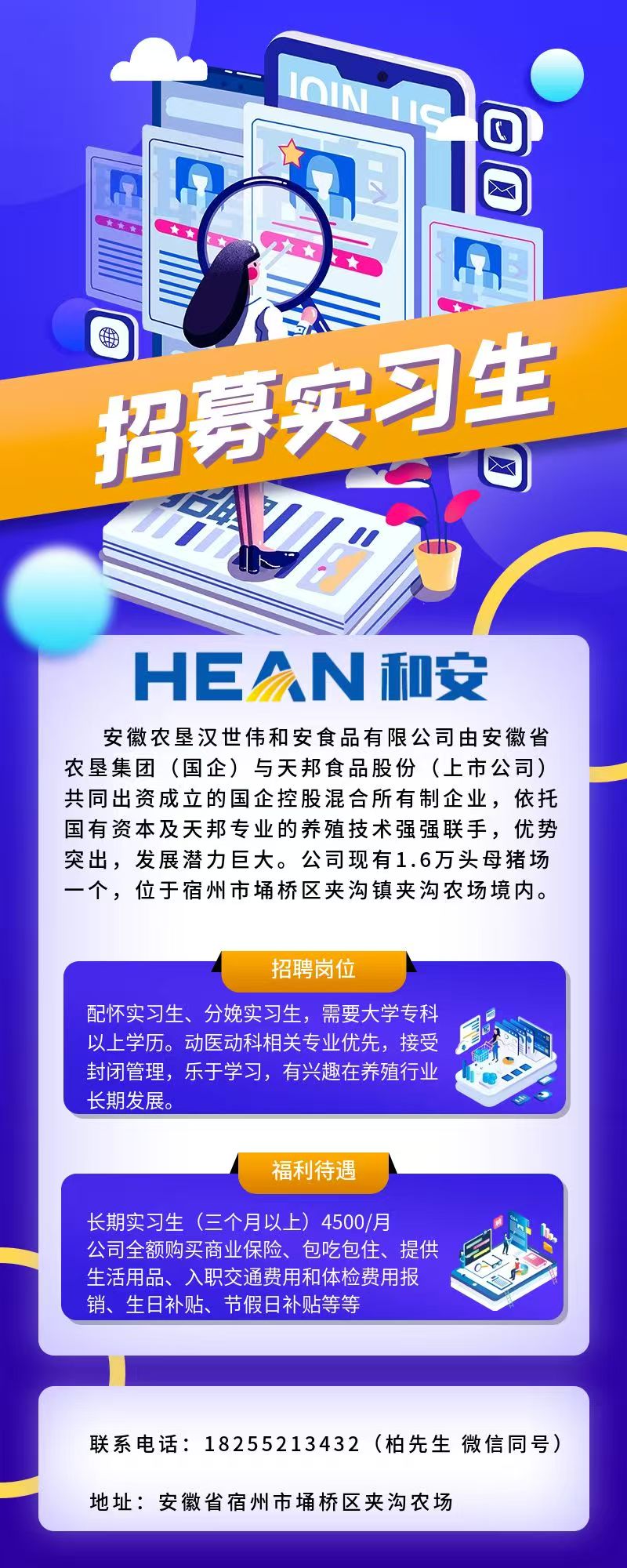 安徽农垦汉世伟和安食品有限公司实习生招募