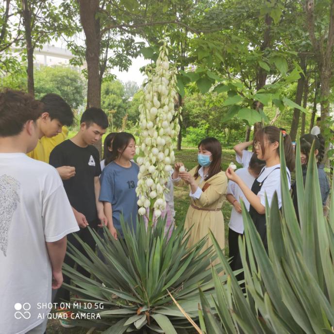 2021年5月10日下午,20级园林园艺全体同学在何莉石娜老师带领下在周口职业技术学院花园里开展本学期课外实训活动,本次活动的主题:园林树木和花卉种类识别、繁殖方法及养护。