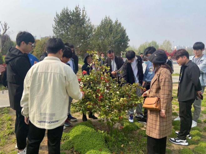 在公园内,老师为同学们深入浅出的讲解了各种树木花卉的特征、识别养护要点、园林假山的施工要求及方法。老师们边走边讲,甚至还有部分同学主动向老师提出各种问题。最后,老师一一给予解答。