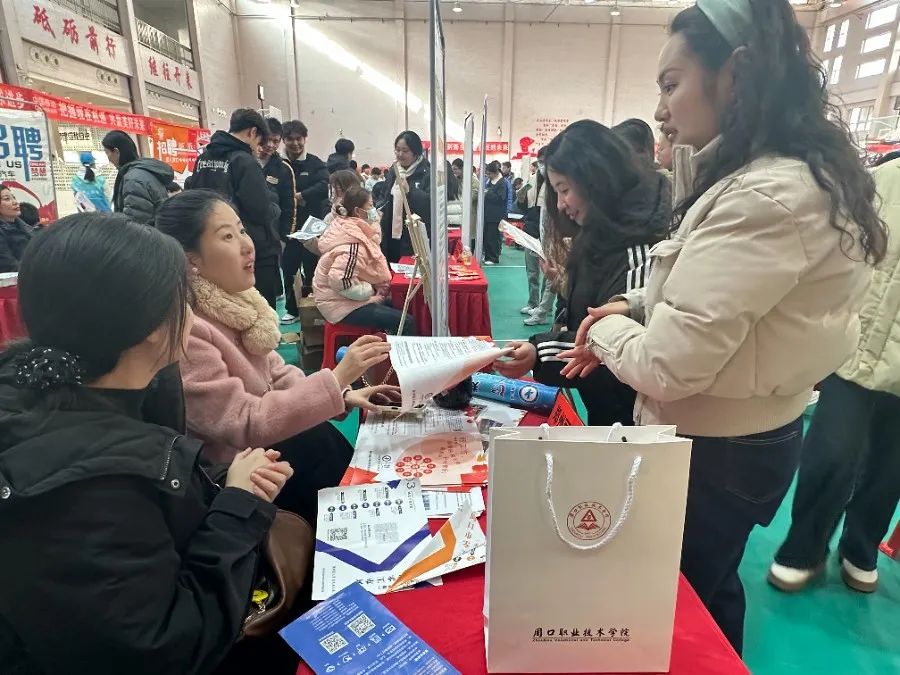招聘会现场热闹非凡,各用人单位热情地向前来应聘的毕业生介绍工作岗位、薪资待遇、个人发展空间等,耐心细致地解答了求职学生的各种疑问,学生们认真聆听,积极主动投递简历,和用人单位进行沟通交流。