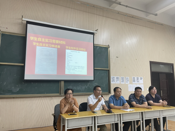 会后各班辅导员发放了《学生实习安全承诺书》、《学生自主实习申请表》、顶岗实习日志等材料。