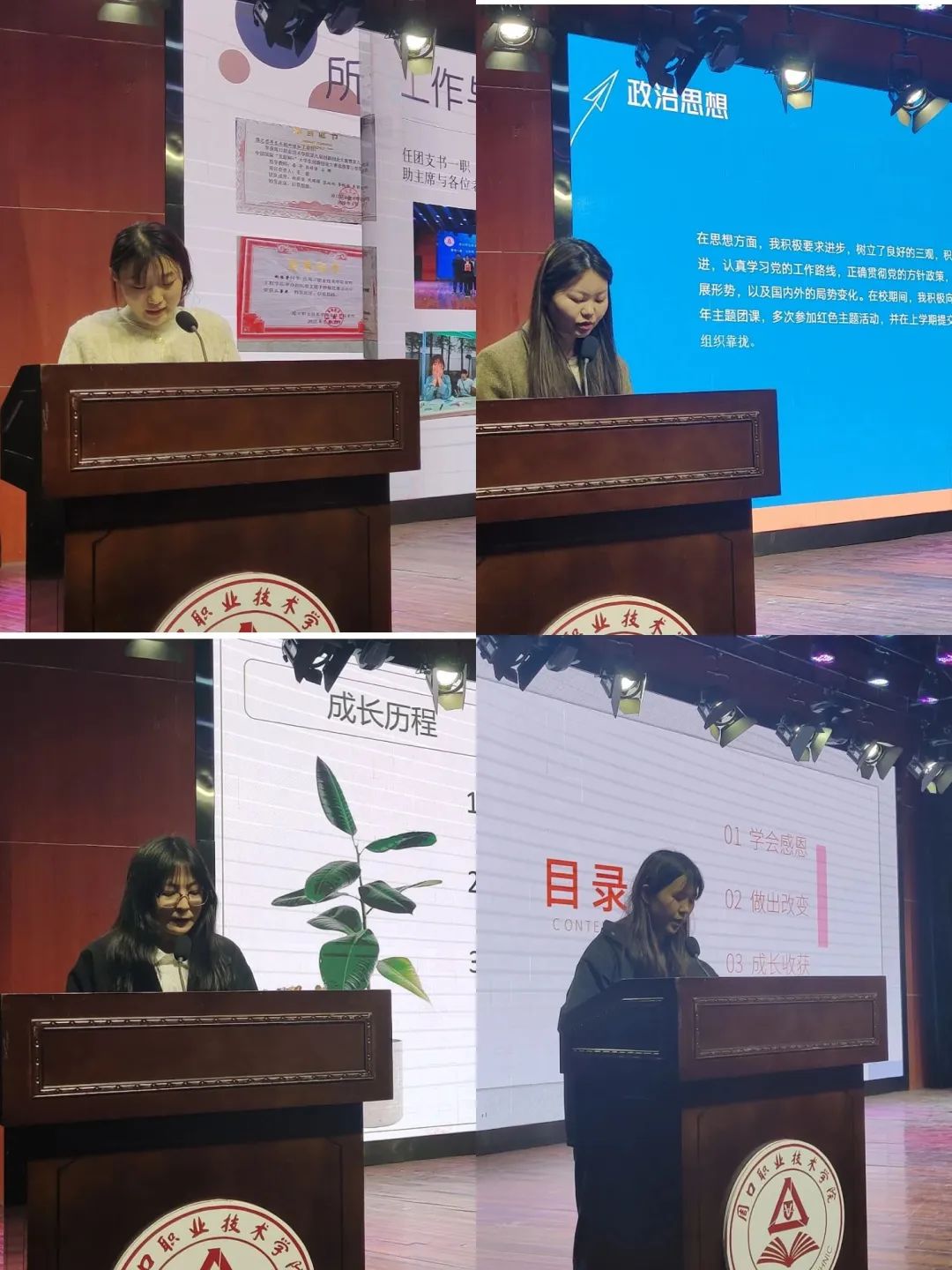 然后获得国家励志奖学金的21级园艺技术一班赵依荣同学也分享了她的成长历程。在学习上赵依荣告诉我们“学习必须持之以恒,成功永远不会降临到懒惰者的身上。只有锲而不舍,不断努力,不断追求,不断奋进才能在学习上取得一定收获“。21级畜牧一班的何梦菲,22级畜牧兽医二班的尹馨颐代表获得国家助学金的同学发言。她们的报告发言,让我们明白国家对品学兼优且家庭经济困难的莘莘学子的眷恋和厚望。同时我们要感恩社会,砥砺前行,争做新时代的好青年,为实现“第二个百年”奋斗目标做出我们学子应有的贡献!