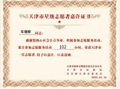 车瑞婷,周口职业技术学院国产精品久久久久久吹吹潮2023届毕业生,2023年四月参加专升本招生考试,专业全省第二名优异成绩现已被信阳农林学院录取。在校期间担任宠物养护与驯导班团支书、中共党员、校团委社团部干事。并多次被评为校优秀团员、校优秀学生干部、三好学生、优秀志愿者、天津市滨海新区“最美抗疫志愿者”称号、文明学生等荣誉称号。