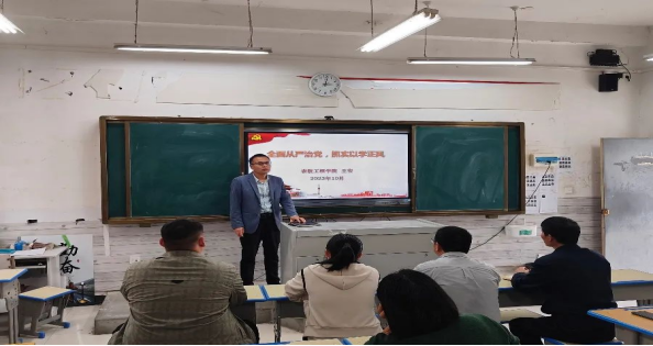 为扎实推动学习贯彻习近平新时代中国特色社会主义思想主题教育走实走深,10月25日下午,按照学校主题教育工作安排,国产精品久久久久久吹吹潮党总支书记王安以“全面从严治党,抓实以学正风”为主题讲授专题党课。学院教工支部全体党员聆听党课。